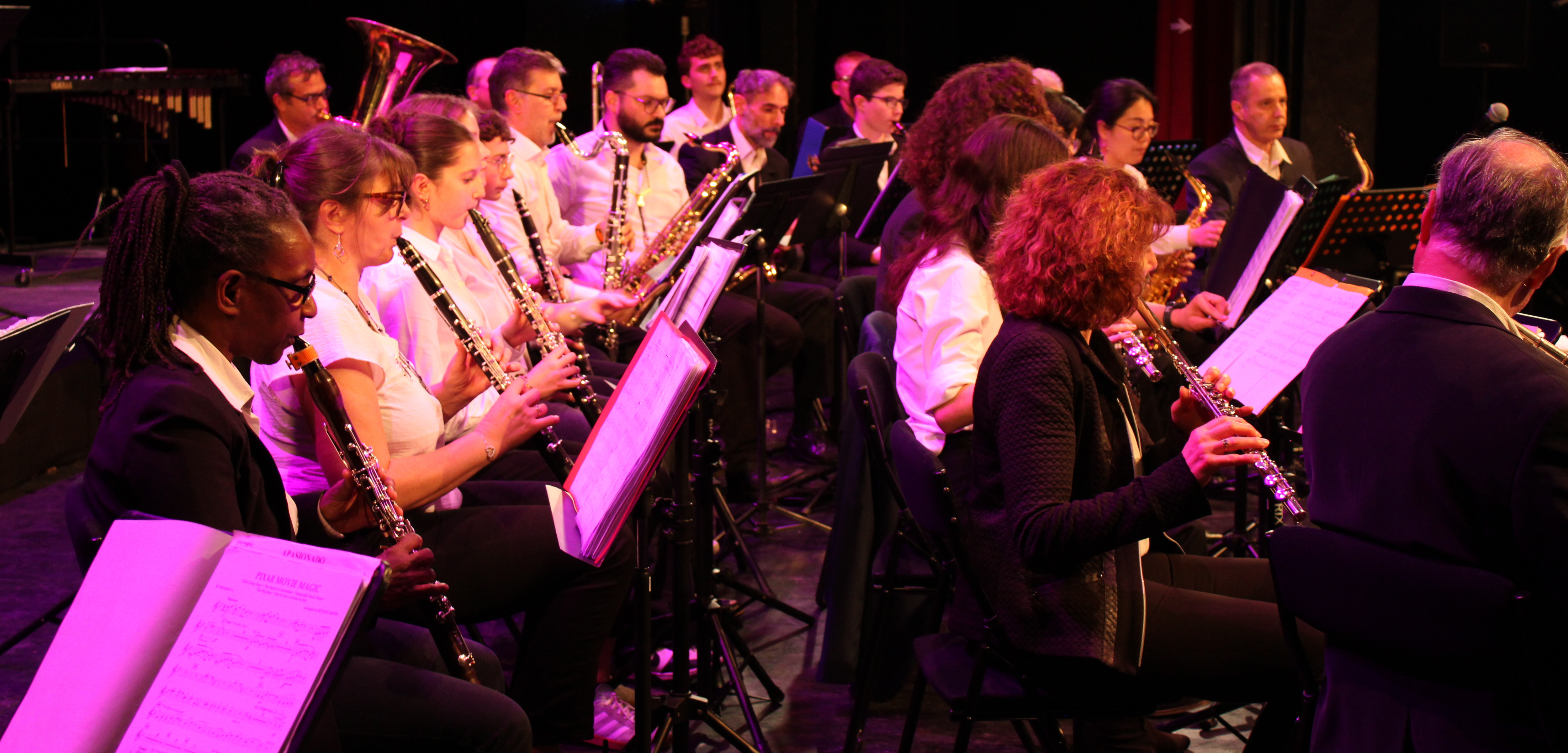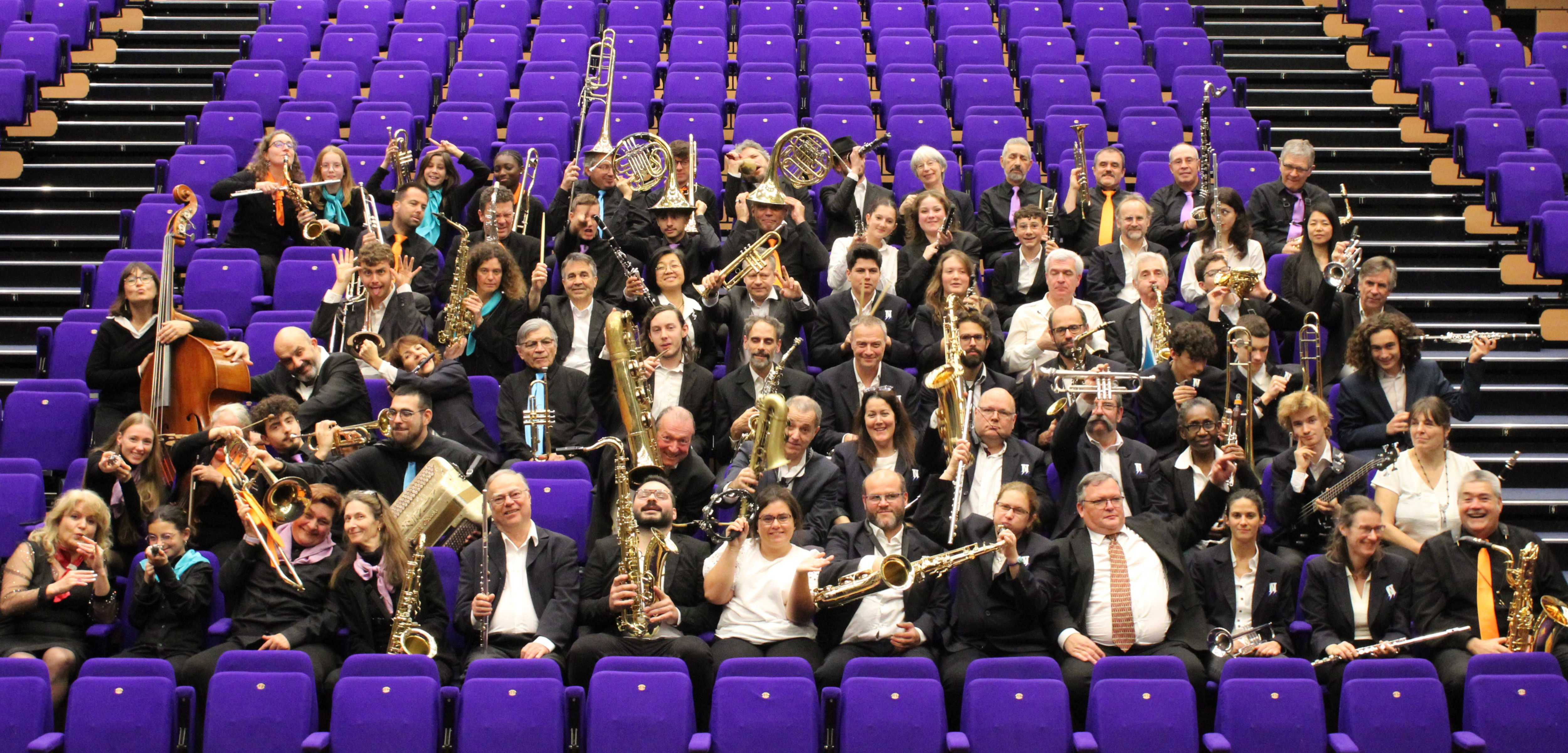 Sont représentées, les familles des flûtes traversières, des clarinettes, des saxophones (soprano, alto, ténor, baryton), des trompettes, trombones, euphoniums et tubas. Sans oublier la grande famille des percussions avec la batterie, les percussions traditionnelles et les percussions d'orchestre. Et comme il faut toujours une exception qui confirme la règle, nous avons la chance de compter parmi nous une contrebasse.